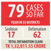 Zahid Bepari, an additional public prosecutor of Faridpur, filed the suit on February 22. Later, the court asked the Star editor to appear before it yesterday. It is one of the 79 cases that have been filed against Mahfuz Anam in 53 districts since February 9. The cases include 17 pleas for bringing sedition charges against him. The complaints cite Tk 1,32,811 crore as losses incurred due to “defamation”.