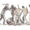 As the passengers screamed, locals rushed to the spot and caught three of the gang and beat them up, added police.