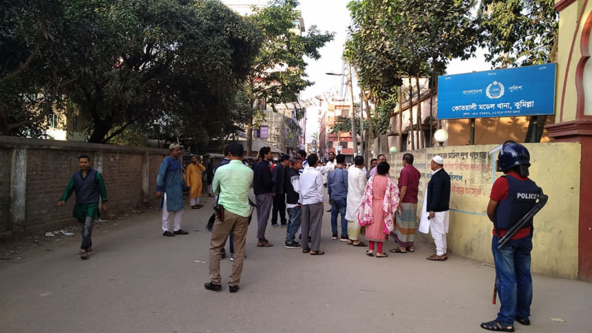 AKM Bahauddin, current lawmaker from Awami League for Cumilla-6 and a candidate of the seat in the election, went to the police station hearing the news.