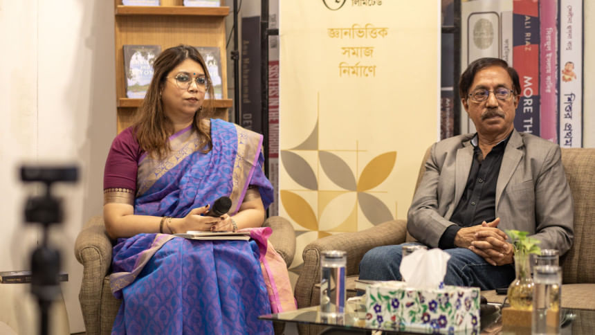 The conversation on the book commenced with Dr Manzoor posing a specific question to Professor Seely regarding the tension between "ichha" and "niyom" in Rabindranath Tagore's "Tasher Desh" (1933). In his response, Dr Seely pointed towards the idea of compromise between the two opposing forces. He contemplated that compromise was the only way to navigate the murky and complicated times of the present as well. In his opening remarks, Professor Sarker articulated the problems characterising the Bengal Renaissance and the issues of "villainising the Musolman" by the early authors.
