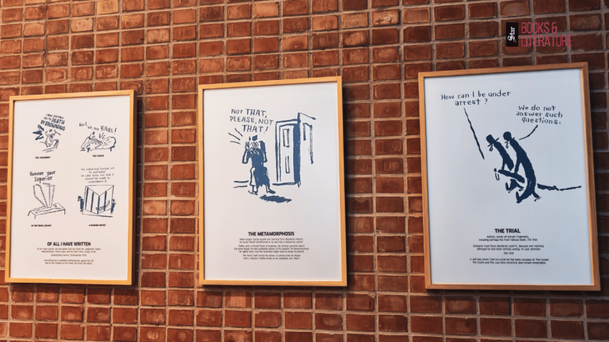 Beyond the VR experience, the exhibition features a collection of minimalist illustrations, "The Complete Kafka", by Austrian artist Nicolas Mahler. His stark, witty drawings reinterpret Kafka's complex world with a touch of humour and existential melancholy, bridging literature and visual storytelling. The eclectic mix of captions beneath each illustration—some drawn directly from Kafka's journals and letters, others inspired by his fiction—adds another dimension to the exhibition, connecting the artwork to Kafka's own stream of thought. The venue also houses the Kafka Café– a quiet space for reflection and conversation, where visitors can browse selected readings, sip coffee, and engage with fellow Kafka enthusiasts.