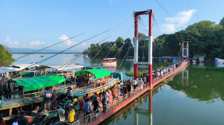Fakhrul Islam, lineman at the tourist boat wharf, noted that tourists had avoided the area while the bridge was submerged. "But since reopening today, many visitors have come. About 20 to 25 boats have been chartered so far," he said.