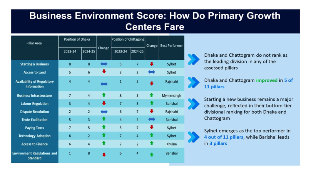 Sylhet topped in four out of 11 pillars. Those are—starting a business, access to land, paying taxes and technology adoption.