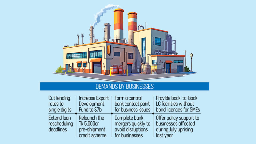 After the meeting, Mohammad Hatem, president of the Bangladesh Knitwear Manufacturers and Exporters Association, said that apart from lower bank interest rates, businesses also want an extension of the tenure of the central bank's loan rescheduling facility.
