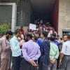 A group of officials and staff of the bank staged demonstrations on Tuesday alleging that they were deprived of official benefits and promotions over the last seven years.