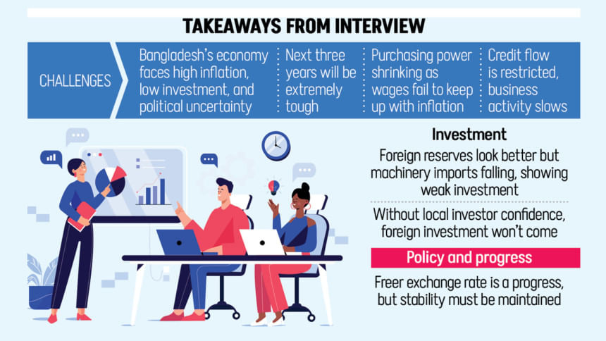 Speaking to The Daily Star in an exclusive interview, he explained that Bangladesh's economy is under growing pressure from high inflation, slowing investment, and deepening political uncertainty. The law-and-order situation has yet to inspire full confidence.