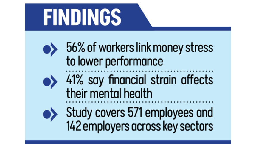More than 56 percent of private sector employees in Bangladesh say financial stress is hurting their productivity, according to a new study released by MetLife Bangladesh.