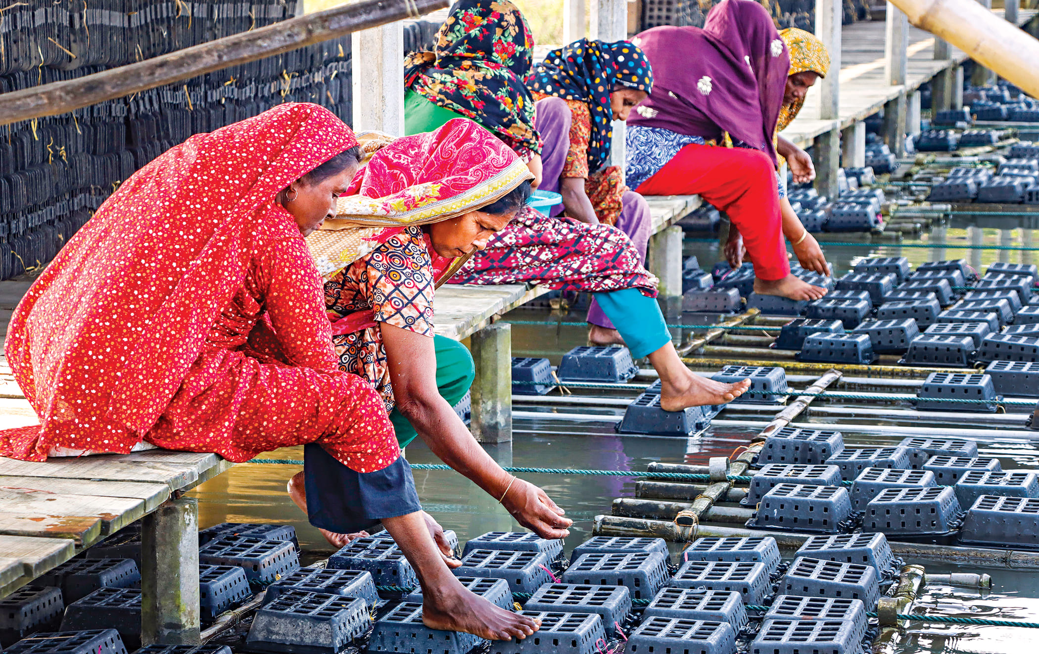 Villages such as Datinakhali, Arpangasia, Burigoalini and Munshiganj are now lined with floating plastic cages.