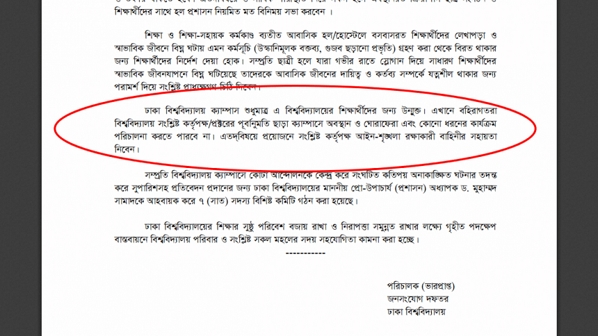 Two days ago, Dhaka University rolled out the directives of its provost committee meeting which, among other “eyebrow-raising” things, included a ban on outsiders in the backdrop of campus heating up in protests over the treatment given to quota reformists.