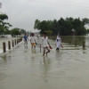 A portion of a village protection embankment went under floodwaters in the Jamuna river in Kalihati upazila of Tangail on Saturday afternoon.