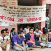 Prof. Sayeed Ferdous of Anthropology department at Jahangirnagar University started sit-in at the University Central Shaheed Minar demanding the withdrawal of the vandalism case filed against 56 students. Photo: collected.