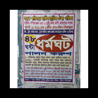 Khulna Division Road Transport Owners-Workers' Unity Council enforced the strike demanding the withdrawal of two compensation cases filed against the owners of Chuadanga "Deluxe Paribahan" and "Green Line Paribahan".