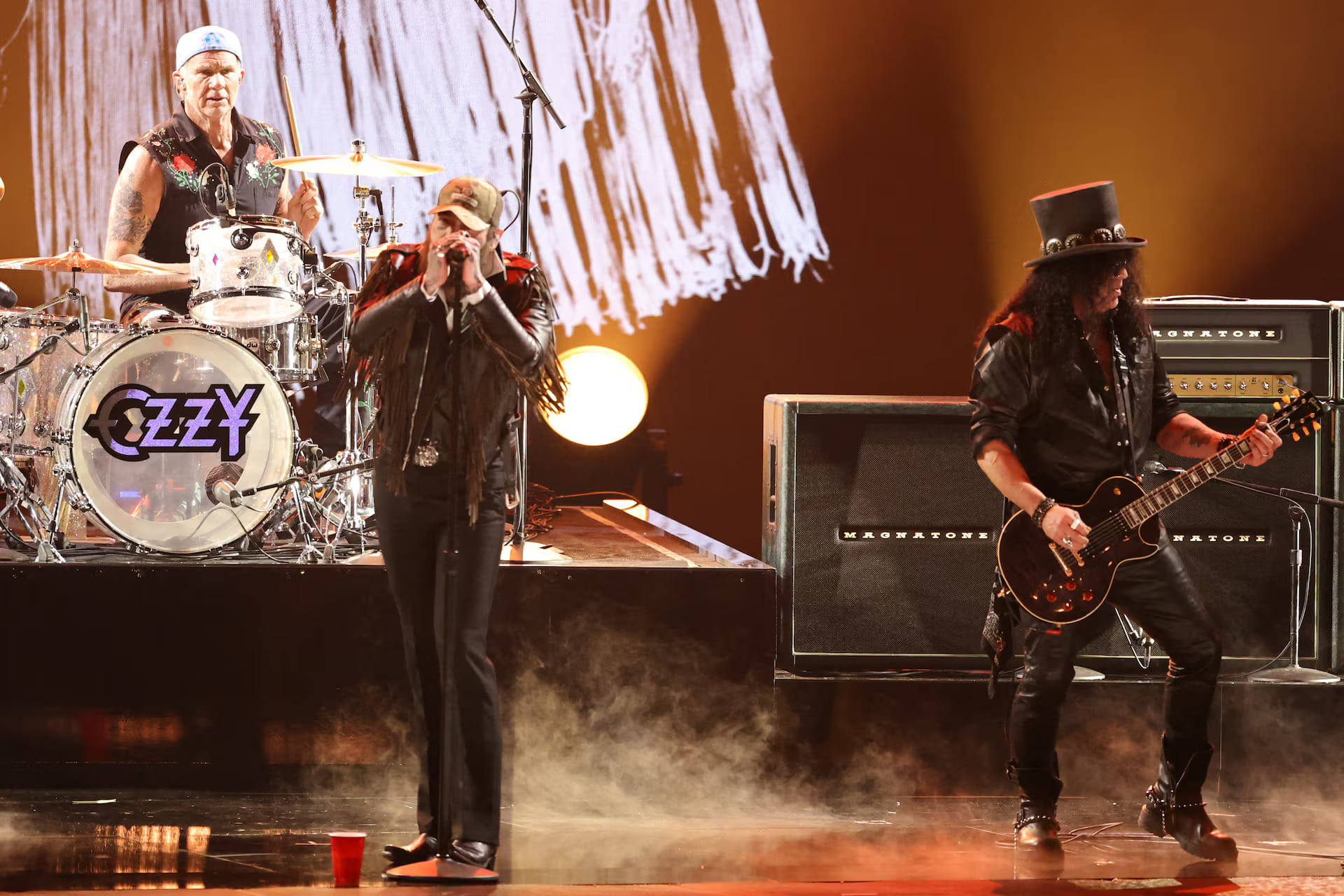 A major highlight was Post Malone leading a tribute to Ozzy Osbourne, performing alongside Chad Smith, Duff McKagan, Slash, and Andrew Watt.