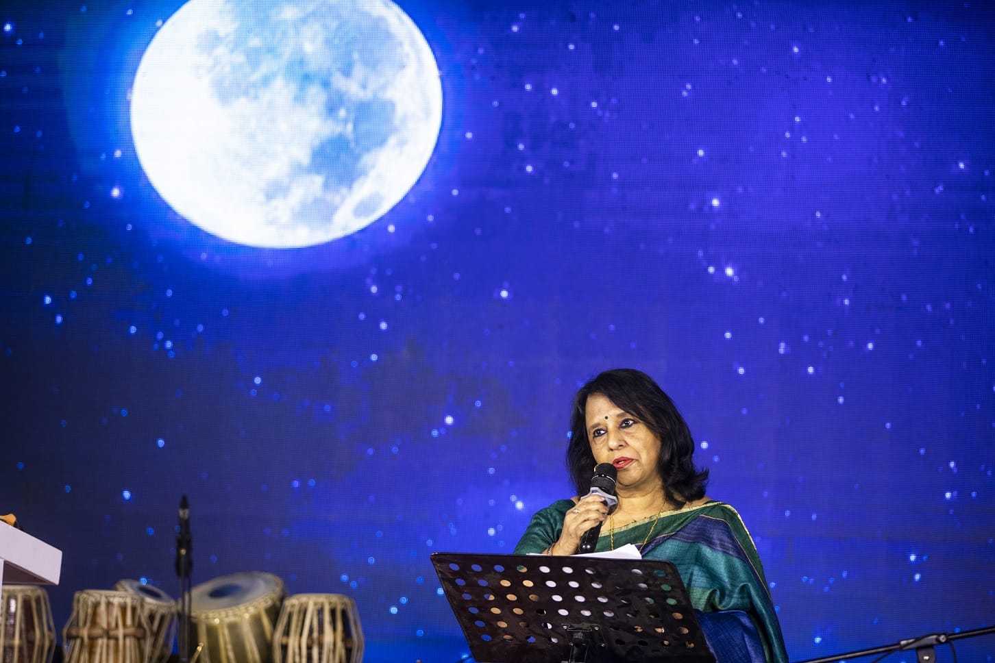The stage was then set with simple instruments: tabla, harmonium, and keyboard. Rabindra Sangeet singer Mahnaz Karim was to perform, but she became deeply emotional hearing the stories of cancer.
