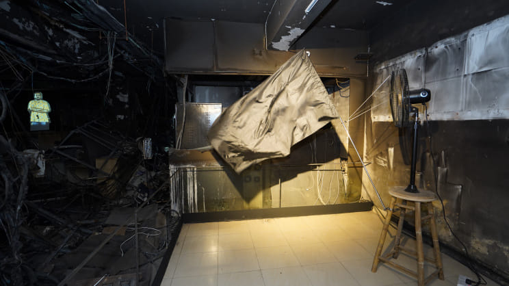 Entering the burnt structure for the first time, Mahbubur Rahman described feeling overwhelmed by what he saw; charred walls, damaged rooms and fragments of what once sustained daily work.