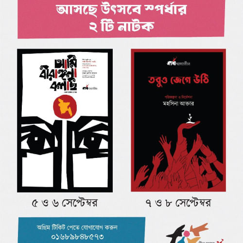 "Ami Birangana Bolchi" — adapted from Nilima Ibrahim's landmark text, resurrecting the silenced voices of 1971's war heroines through commanding performances by Mohsina Akhter and Sharmin Akter Shormi.