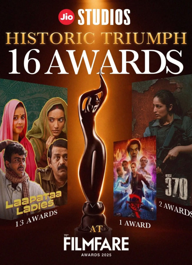 The 70th Filmfare Awards illuminated Ahmedabad's EKA Arena on Saturday night, blending Bollywood glamour with moments of nostalgia and artistic triumph. The night belonged to "Laapataa Ladies," which swept the ceremony with an astounding 13 wins — including Best Film and Best Director for Kiran Rao — equalling the long-standing record set by "Gully Boy."