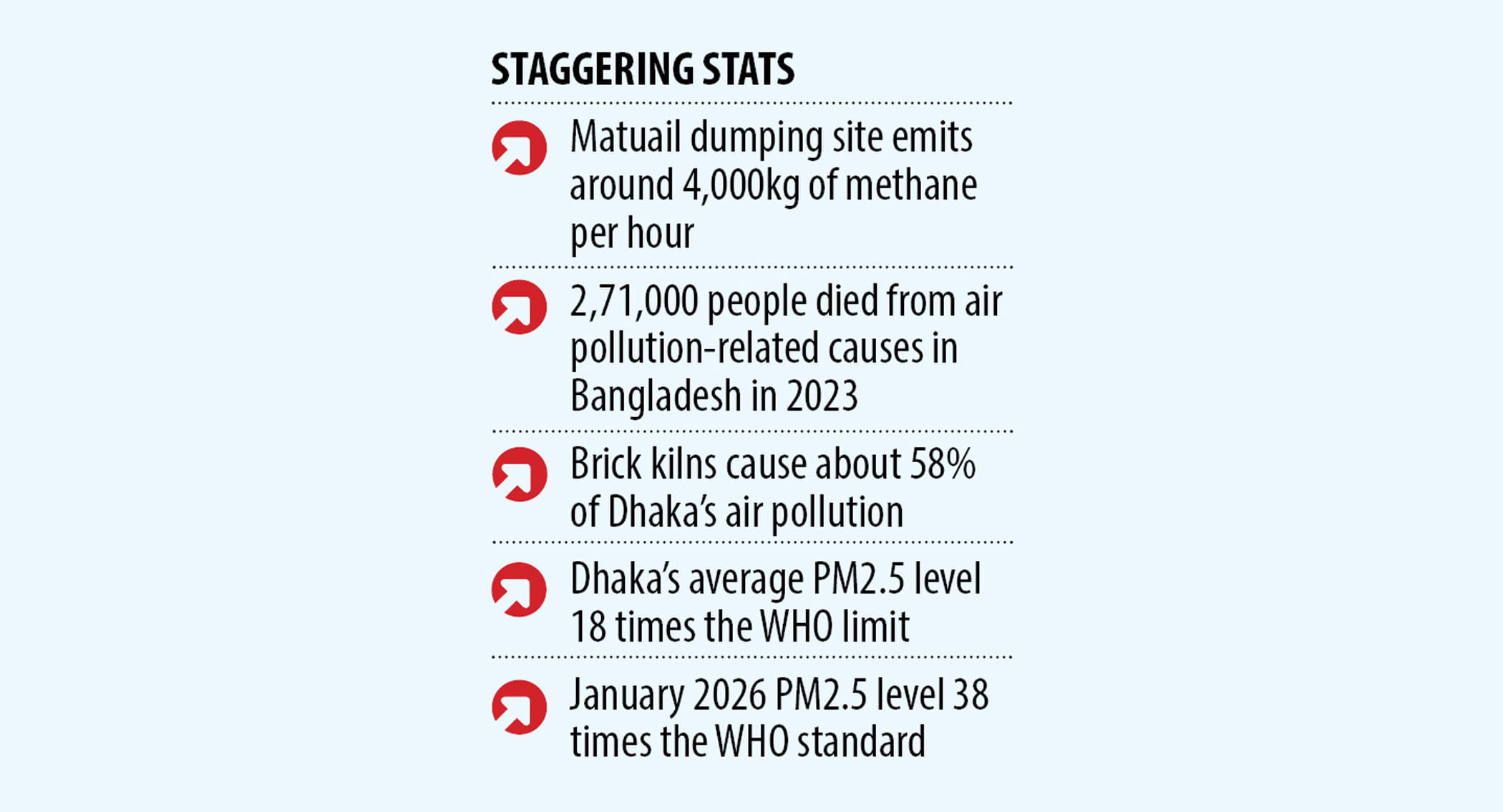In January 2026, Dhaka’s average PM2.5 concentration rose to 193 per cubic metre -- 38 times higher than the WHO standard.