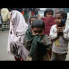 Many are unable to buy winter clothes, and were seen sitting huddled together around straw fires to keep warm.
