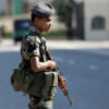 Soldiers with automatic weapons stood guard outside major hotels and the World Trade Centre in the business district, a Reuters witness said.