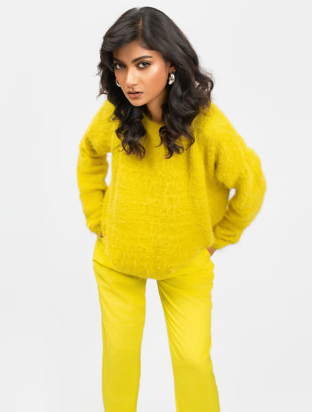 Then comes the hue everyone loves! Yellow in all shades is a definite crowd pleaser that’s flattering on all, and transitions wonderfully from day to night. Yellow pants on its own sounds a bit much, but not when paired with an elegant yellow sweater!