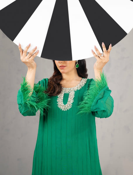 Over time, her work expanded into both couture and prêt. The rhythm of her collections now shifts intentionally. This Eid, for example, she chose to focus on slow fashion — fewer pieces, more detail, greater emphasis on exclusivity of design. After the festive season, Tazin plans to pivot toward faster drops, responding to the quicker retail pace that customers increasingly expect.