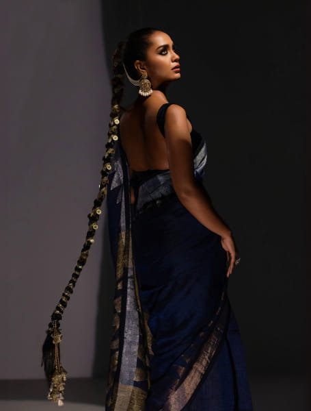 An ivory Jamdani accessorised with lovely red and gold parandi will add a much-needed charm to your outfit while staying on trend. You could also add multicoloured tassels to your parandi to make it look even more fun and festive.