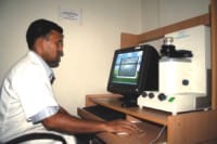 A technician uses a Kertu Analyser for endothelium cell count. |