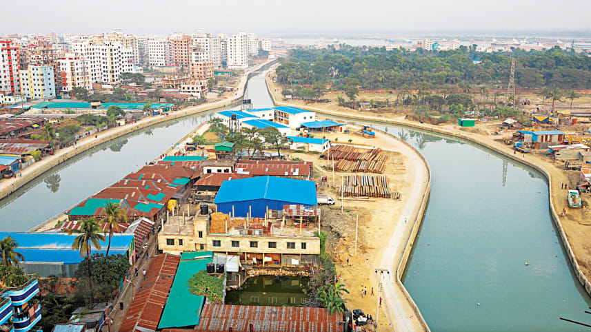 THE COMEBACK OF CANALS: The Rajakhali canal in the port city’s Bakalia area is one of the 20 canals that have already been dug up under the Chattogram Development Authority’s drainage project. According to it, the excavations of at least 16 more canals are currently underway across the city. The photo was taken recently. Photo: Rajib Raihan