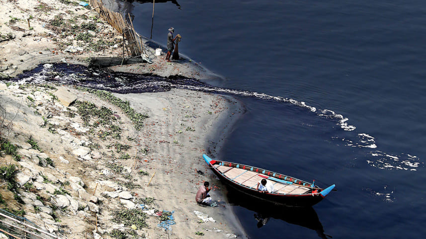 Liquid waste flowing into the Shitalakkhya from a storm sewer. In the absence of consistent and robust measures to protect them, our rivers continue to be victims of extreme pollution for years on end. The photo was taken yesterday. PHOTO: ANISUR RAHMAN