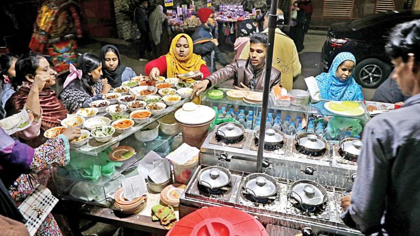 WINTER DELIGHT... People flock to this pitha shop near Krishi Market in Mohammadpur, enjoying the wide range of items being sold. The shop owner prepares bhapa and chitoi pithas, with an assortment of bhortas for the latter. The photo was taken recently. Photo: Prabir Das