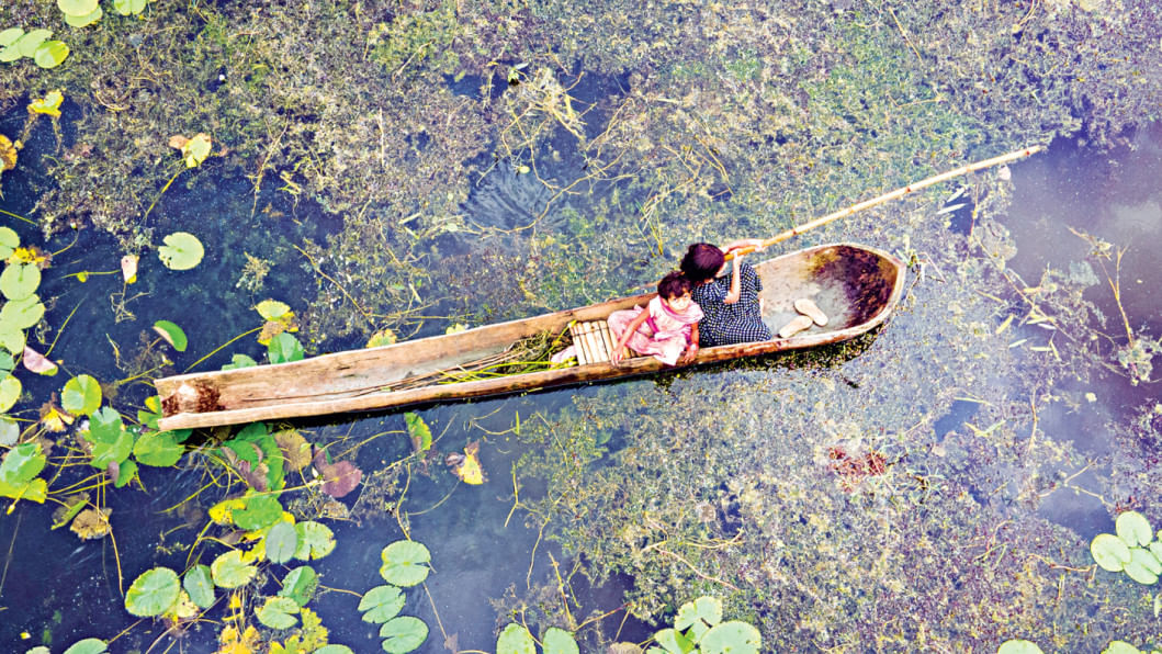 Two little friends glide through the calm waters of Chakai Beel in Narail, their laughter echoing across the serene wetland. Surrounded by lush greenery and floating leaves, their simple joy reflects the pure beauty of rural life -- untouched by the rush of modern distractions. The photo was taken yesterday. Photo: Habibur Rahman