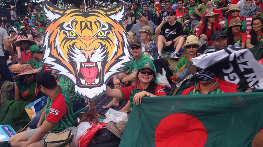 Bangladeshi fans cheer for the Tigers during the World Cup match against New Zealand at Hamilton on March 13, 2015. Photo: ICC