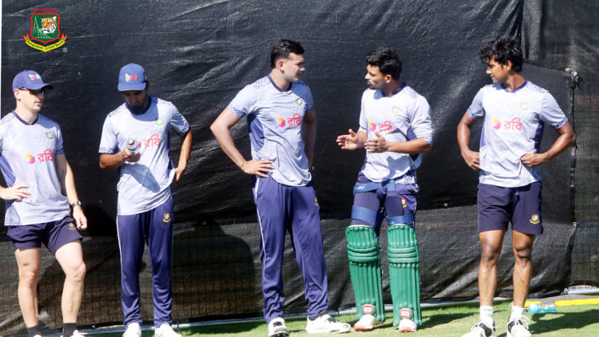 In preparation for their opening match of the T20 World Cup against Sri Lanka on June 8, Najmul Hossain Shanto-led Bangladesh team practiced at the Mustang Cricket Academy in Dallas, USA on Tuesday. PHOTO: BCB