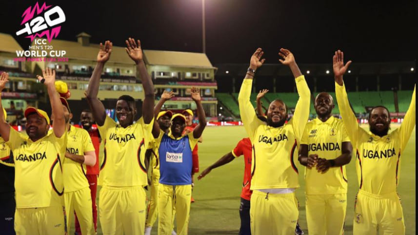 Brian Masaba's Uganda lineup scraped to a three-wicket victory in a low-scoring thriller against Papua New Guinea on Wednesday for their first win at a T20 World Cup. The Ugandans celebrated their victory with dancing on the edge of the field as the team, which beat out more established cricketing nation Zimbabwe to reach the tournament, picked up their first points. In his first appearance at 43 years of age, Franck Nsubuga (2-4) conceded four runs, which was the fewest by any bowler in the history of the Men's T20 World Cup to have bowled their full allotment of four overs. PHOTO: ICC/FACEBOOK