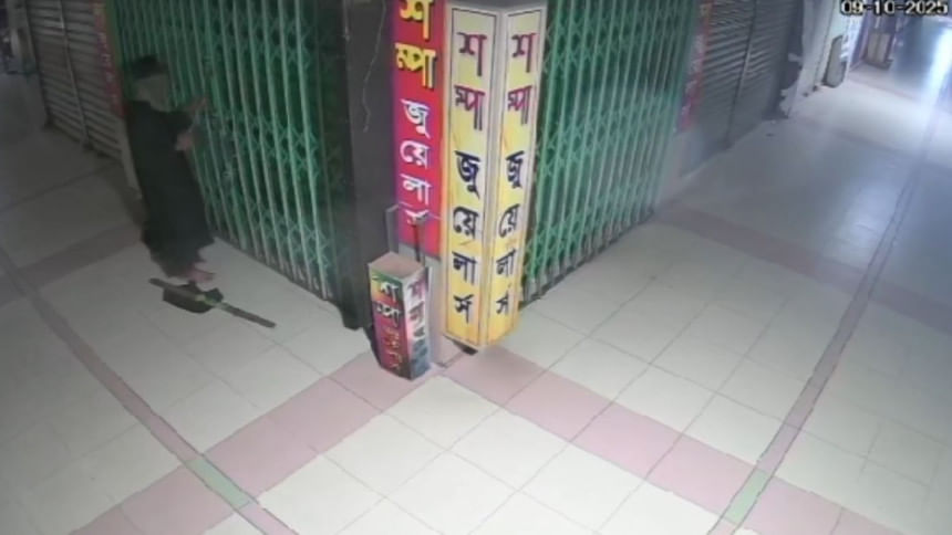 CCTV footage shows two members of the gang, wearing burqas, entering the market, cutting through the shutter lock, and looting the gold ornaments, shop owner Achintyo Kumar Biswas told The Daily Star.