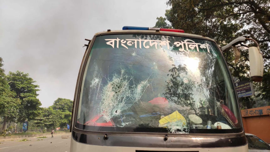 A police vehicle was vandalised and several people were injured during the incident, our photojournalist reported from the spot.