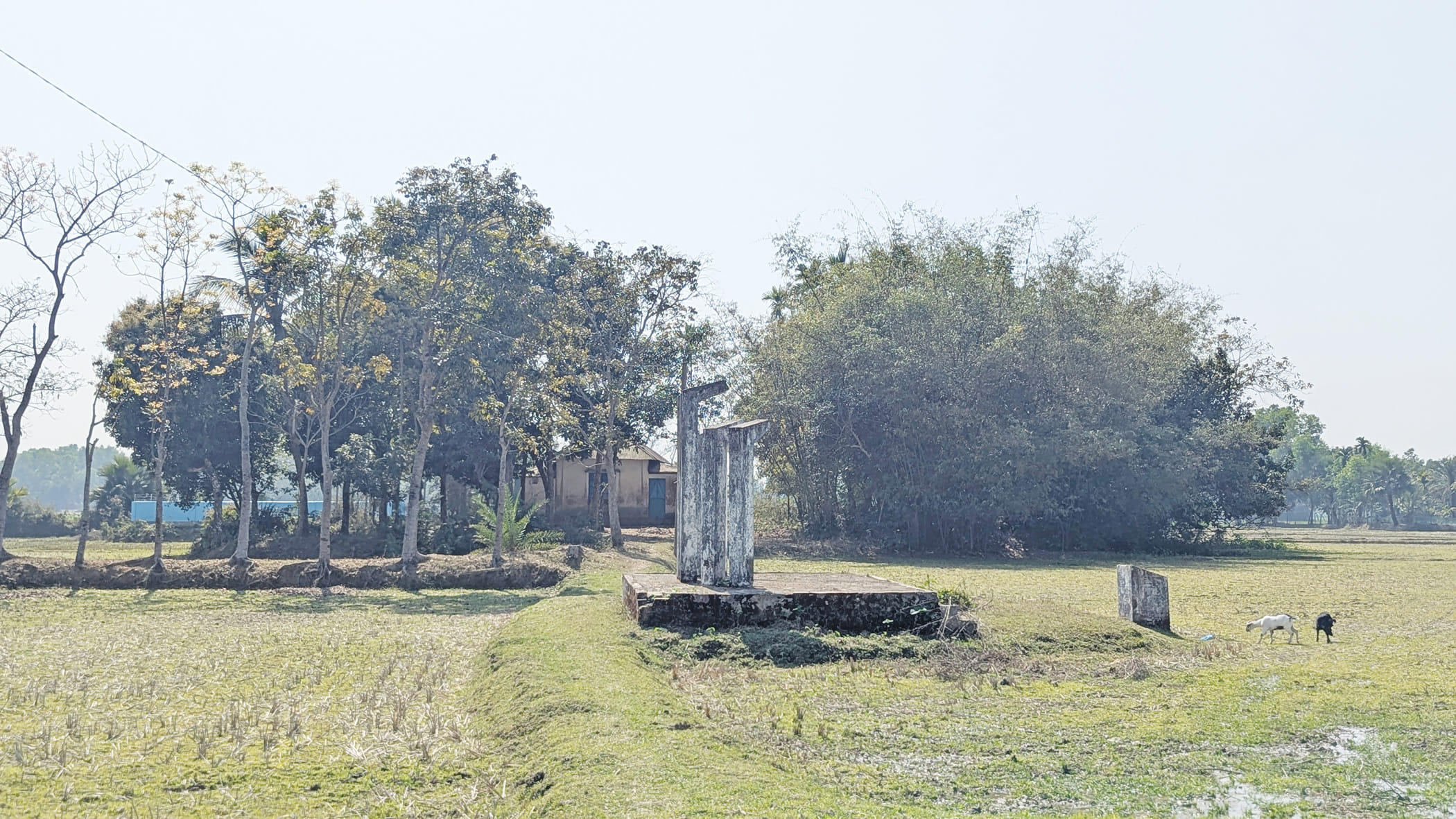 The dilapidated shaheed minar built in memory of Abdul Jabbar in Shimulkuchi village in Mymensingh’s Haluaghat upazila. There is no road leading to the shaheed minar and his family home.