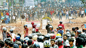 Meanwhile, current situation at Dhaka's New Market area, which turned into a battlefield yesterday, was calm this morning. Traders have not opened shutters of their shops yet, however.