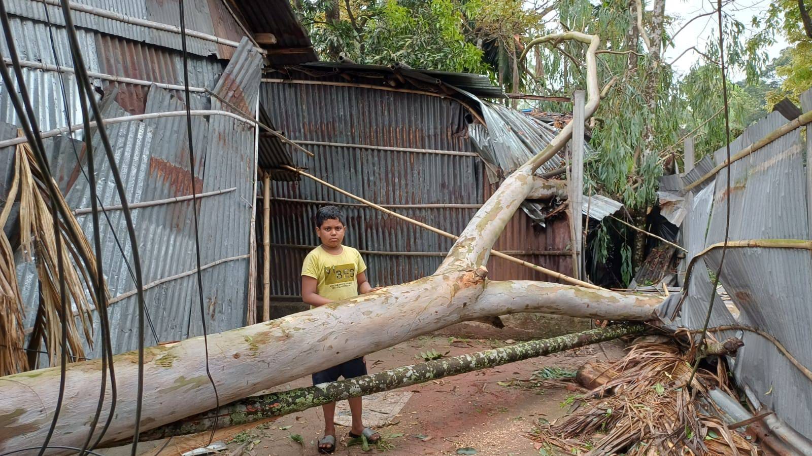 The storm also hit Atwari, Boda and Debiganj upazilas, damaging houses and standing crops, and uprooting numerous trees and electricity poles.
