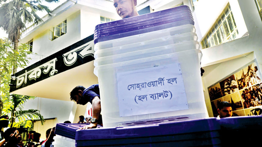 Meanwhile, the Election Commission has fined the Islami Chhatra Shibir-backed panel 'Sompriti Shikkharthir Jote' Tk 20,000 for violating the code of conduct. Activists of the panel used loudspeakers inside classrooms for campaigning.