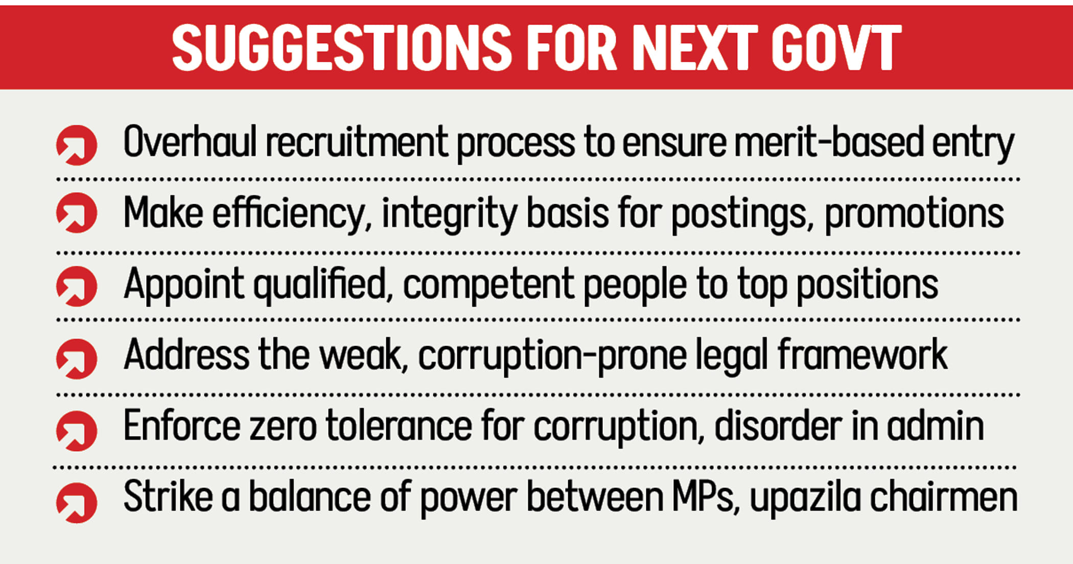 “Qualified and competent people must be appointed at all levels. Honesty and efficiency, not partisan loyalty, should be the criteria for appointing secretaries and heads of agencies as well as officials in the Public Service Commission, the Anti-Corruption Commission, and the Election Commission,” said former secretary Abdul Awal Mazumder.