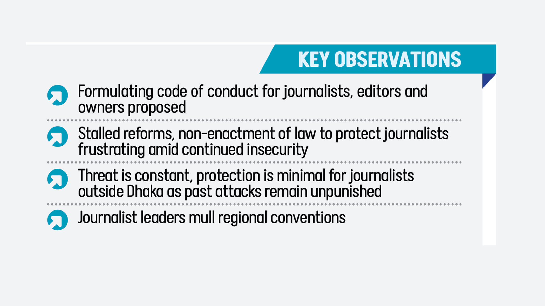 Mozammel Haque, editor of the Bogura-based Daily Karatoa, said that although the number of press clubs outside Dhaka has increased significantly, journalistic quality has not improved at the same pace.