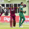 Babar later added 55 runs for the fifth wicket with Sarfraz Ahmed (26). While West Indies may have felt satisfied with a Pakistan scoreline then of 183-5 in the 39th over, Babar and Imad then smashed an unbroken 99-run stand off 11.2 overs to boost their side's total, with Babar ending with seven fours and three sixes.
