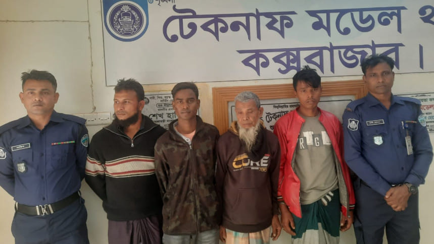 Later in the day, the five arrestees were produced before a Cox's Bazar court after a case was filed in this connection and the court sent them to jail, added the OC.
