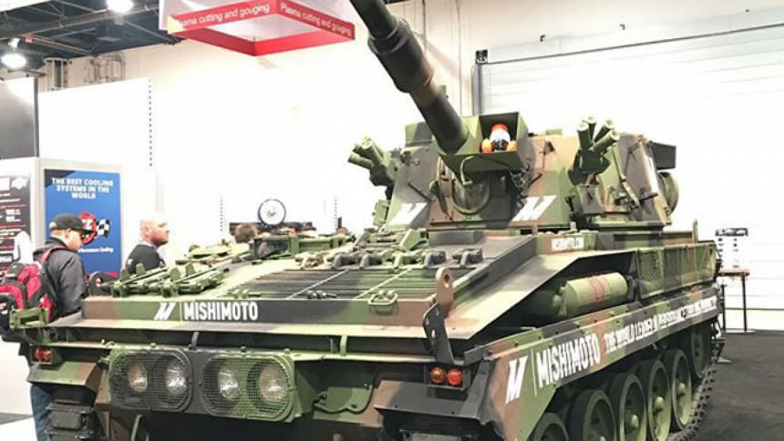 The crazies were out in full force at this year's SEMA, with aftermarket cooling parts manufacturer Mishimoto bringing in an actual TANK. Another custom that left attendees' jaws on the floor was the "Valyrian Steel", a massive…thing with wheels and chrome and jagged edges, inspired by the Game of Thrones series of books and the TV show. It took 2000 hours of work to build the thing from scratch, and it isn't even complete yet. Underneath is a 5 litre Ford Mustang GT V8, although we wouldn't be brave enough to drive it.