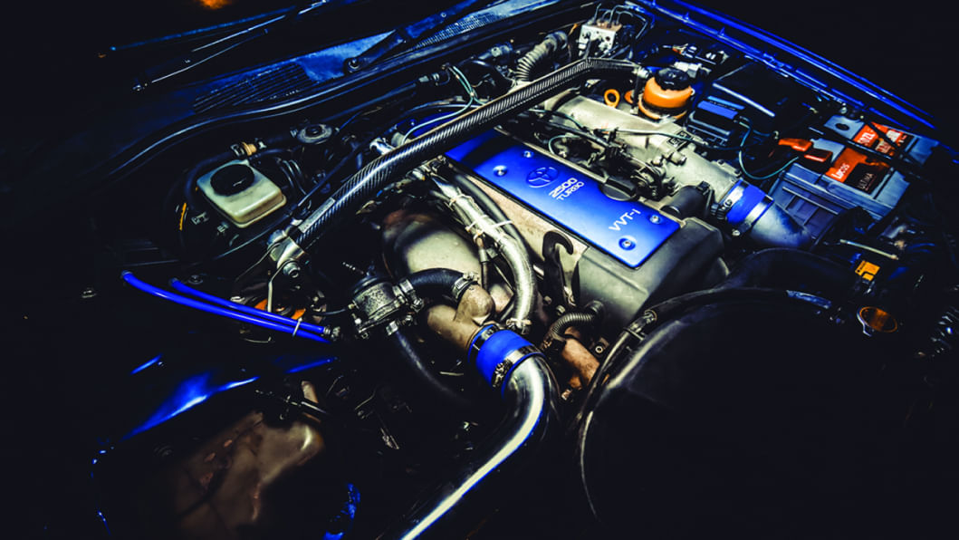 The car looks the part too, and I really can't put my finger on why. Is it the lowered stance (courtesy of Tein coilovers and 18" Rays alloys), the dark blue color scheme, or is it the big Blitz intercooler peeking out of the front bumper? All of it, as it turns out. The exterior all comes together and gives a road presence that turns heads everywhere. And this is no garage queen either, goes to show that in the hands of the right person the car can still look factory fresh, despite being driven daily through thick and thin, not to mention traffic consisting of busses, rickshaws and random jay-walking pedestrians. If that random jay-walking pedestrian is a JDM enthusiast though, it's very likely that a sudden stop in the middle of the road to gawk at this beaut will result in a swift but happy death under its polished wheels.