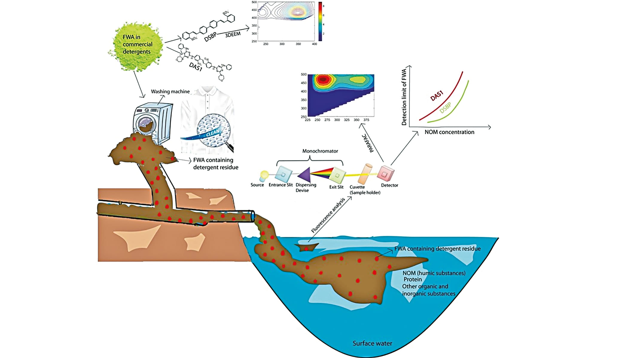 Various studies conducted by the Hydrobiogeochemistry and Pollution Control Laboratory of the Department of Environmental Science at Jahangirnagar University have shown that the rivers, canals, beels, and other water bodies of Bangladesh are being polluted by emerging pollutants. One study found that the excessive use of antibiotics is causing residues in the environment, which can be dangerous for public health. Human and animal medical waste has been identified as the main source of this pollution. The study also found that residues of various antibiotics, such as ciprofloxacin, clarithromycin, amoxicillin, clindamycin, and many others, were present in river water, with ciprofloxacin and clarithromycin recorded at the highest concentrations. In addition, residues of detergents and a type of chemical known as a fluorescence whitening agent were also found in river water, which can cause various health problems, including cancer. These substances also increase the risk of eczema, allergies, and skin infections. Fluorescence whitening agents are popular brighteners that are widely used in commercial detergents to increase brightness. One study has shown that rivers and streams near industrial areas contain high levels of fluorescence whitening agents.