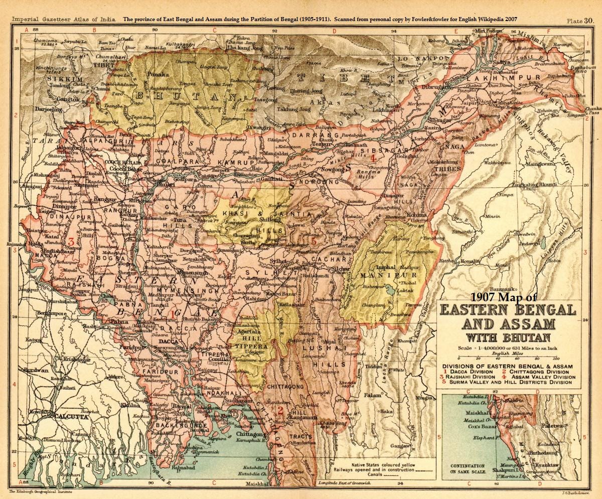 Eastern Bengal and Assam with Bhutan. Creator- J.G. Bartholomew.