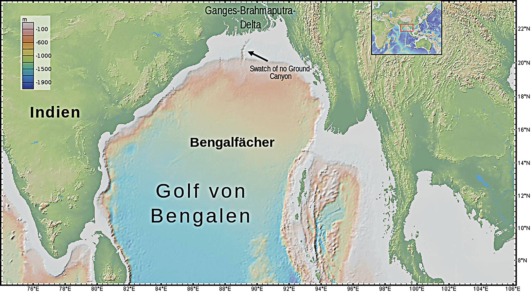 There is evidence that the main Ganges–Padma flow has diverted towards the east over the last 10,000 years, flowing through the Hooghly, Gorai and Arial Khan, and finally settling into the current Padma–Meghna flow. I would argue that for most of its existence, the Padma, after emerging through the Rajmahal Hills, flowed east (possibly through the Atrai Basin/Chalan Beel area) and then turned sharply south to meet a deep submarine canyon called the Swatch of No Ground. In this canyon, just 60 kilometres south of Dublar Char in the Sundarbans, the sea floor gradually drops from 20 metres to a depth of one kilometre over a distance of 100 kilometres, whereas the sea floor on the sides of the canyon remains high, dropping to a depth of approximately 200 metres over the same distance. It was during multiple ice-age periods in the last few million years that the Ganges–Padma river system carved out this deep canyon. These were periods when the sea retreated, exposing land a few hundred kilometres south of its current position. Currently, the Swatch canyon serves as a conduit for the transfer of coastal sediment towards the deep sea. But this ancient geological story is not over. The delta is still being built—and the question facing us today is whether it can survive what comes next.